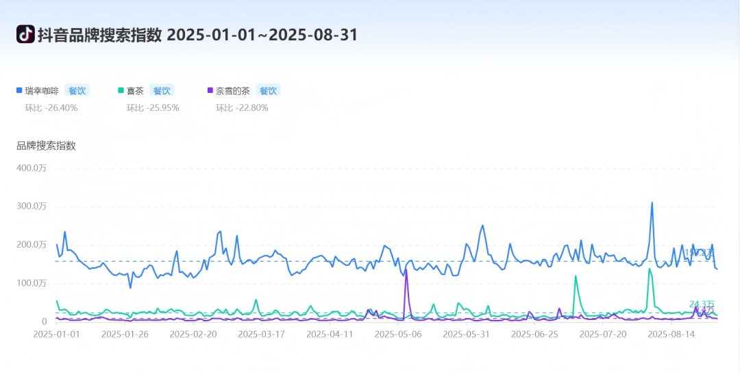 與之相反,喜茶大幅降低了聯(lián)名頻次。今年到目前為止,僅推出與Chiikawa的獨家聯(lián)名,試圖以稀缺性提升價值感。盡管該聯(lián)名活動本身引發(fā)搶購,但從其品牌指數(shù)來看(環(huán)比-25.95%),單點事件難以支撐長期聲量,高端精細化打法尚未展現(xiàn)出可持續(xù)性。然而喜茶的克制或許提供了另一種思路:在行業(yè)普遍追逐聯(lián)名頻次之時,重新審視IP與品牌價值的長期契合,而非陷入消耗戰(zhàn)。