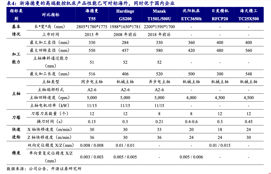 根據(jù)開源證券研報,浙海德曼在其高端數(shù)控機床產(chǎn)品性能上展現(xiàn)出一定的技術積累,部分指標已達到甚至超越海外部分主流廠商水平,并優(yōu)于部分國內企業(yè)。