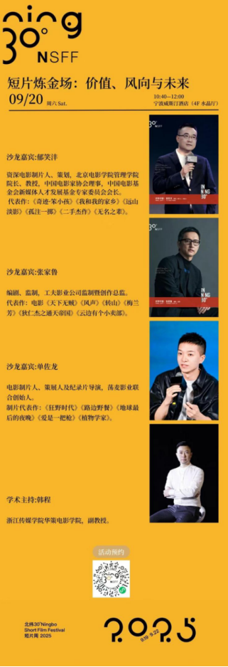 本屆北緯30°短片周主會場設于寧波市中心,從9月19日起,聯(lián)合寧波影都舉辦8場主創(chuàng)交流會,30多部精選的國內(nèi)外影片主創(chuàng)團隊將和寧波的廣大影迷和市民面對面地交流溝通,其中4部為全球首映,1部為亞洲首映,7部為中國首映。大家一起在三江口的光影交織下沉浸式感受影像的多元和浪漫,了解影片創(chuàng)作的幕后故事。