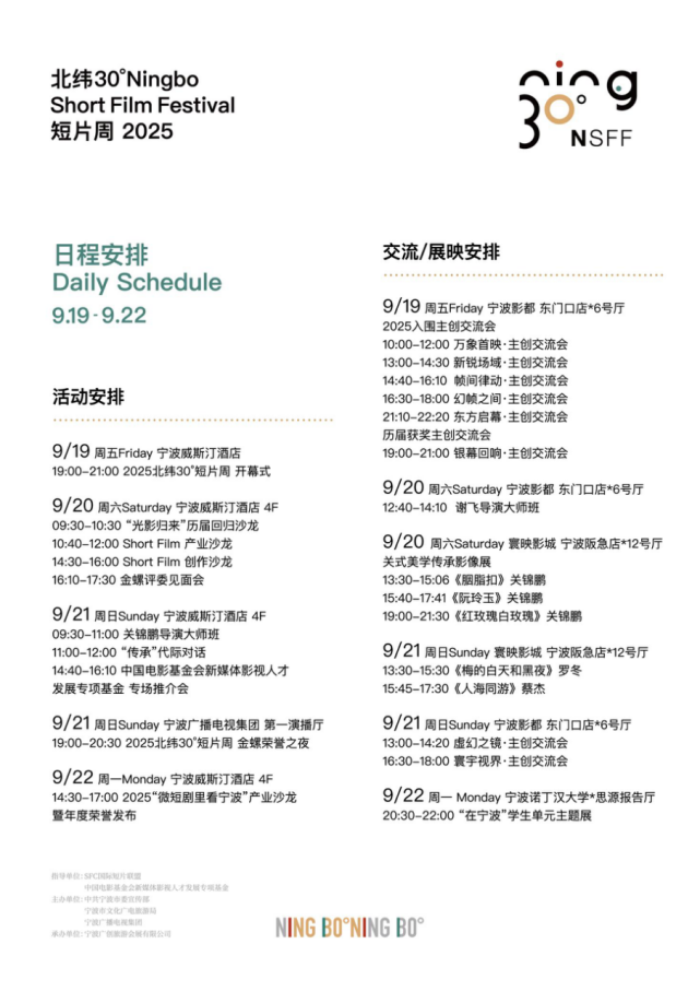 2025北緯30°短片周主體活動日程如下: