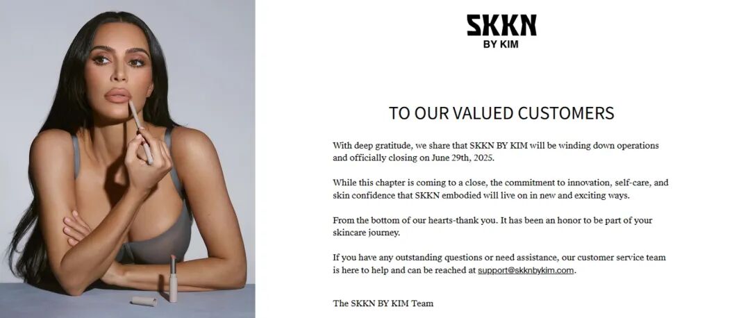 2022年,與科蒂集團合作推出SKKN by Kim,在出售時科蒂集團表示損失了7110萬美元(約合人民幣5.06億元),且于今年5月被金·卡戴珊拿回所有權并歸入Skims,6月官網(wǎng)宣布關閉。