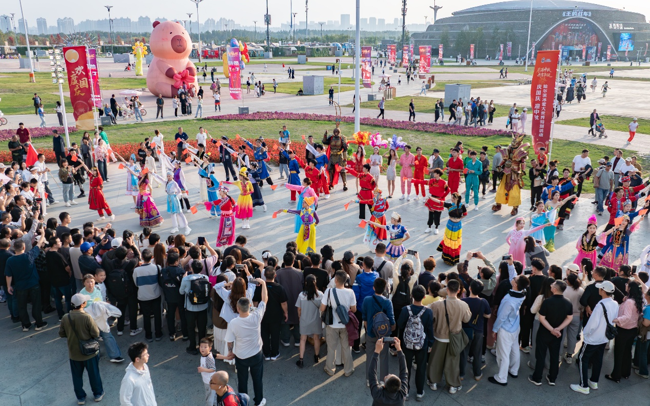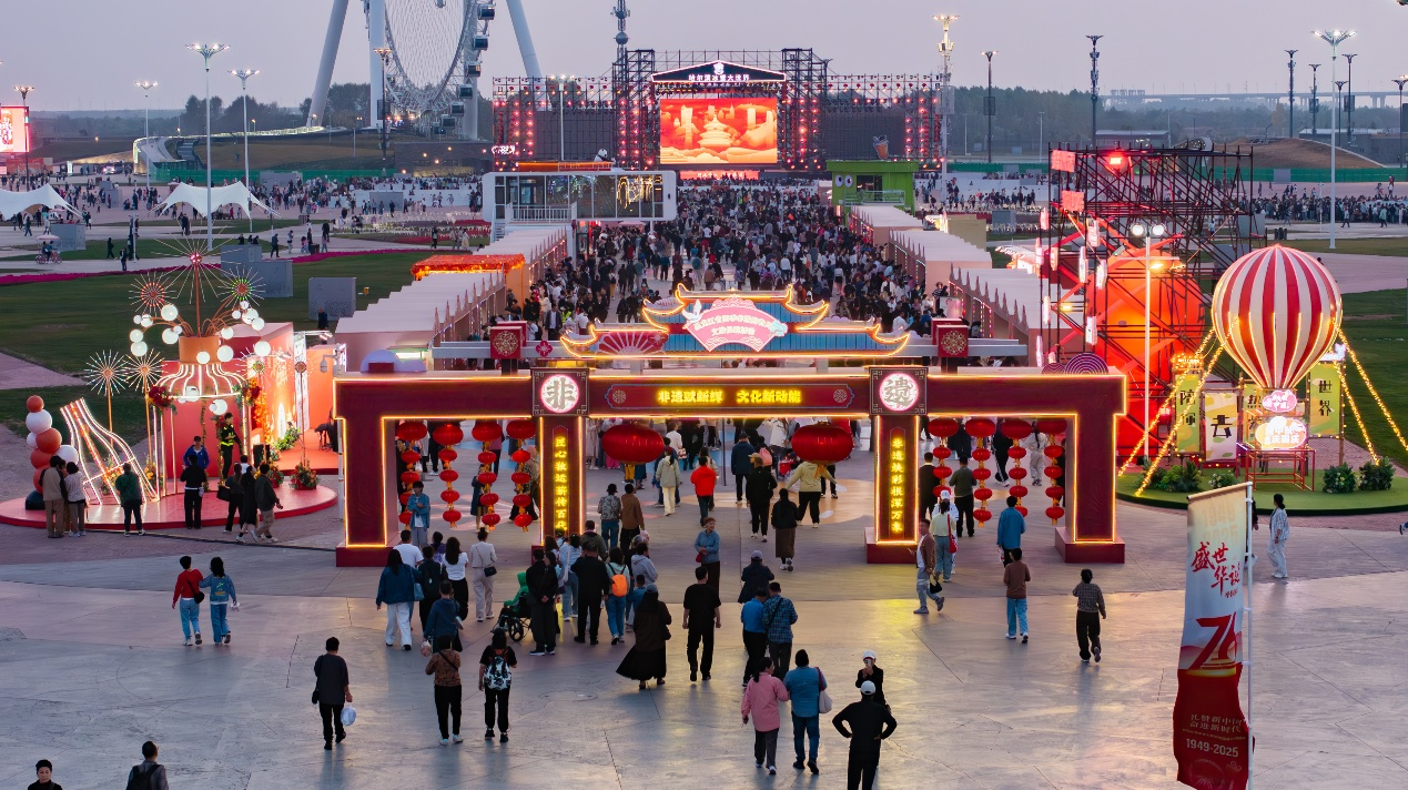 大舞臺(tái)演出依然備受矚目,黑龍江省文聯(lián)文藝志愿服務(wù)惠民專場(chǎng)演出、哈爾濱冰雪大世界雙節(jié)特別演出、哈爾濱冰雪大世界2025中秋文藝晚會(huì)、全球華語(yǔ)流行音樂(lè)金榜選拔賽黑龍江省總決賽等活動(dòng)精彩紛呈。眾多歌唱家、國(guó)家級(jí)演員、知名演藝團(tuán)隊(duì)、網(wǎng)紅達(dá)人等紛紛登臺(tái)演出。從萬(wàn)人齊聲《歌唱祖國(guó)》、共傳五星紅旗的愛(ài)國(guó)情懷,到海外游子跨越山海共唱《月亮代表我的心》的思鄉(xiāng)之情,從數(shù)萬(wàn)人在園區(qū)齊蹦迪的熱鬧歡騰,到線上網(wǎng)友的直播報(bào)道打卡和熱烈點(diǎn)贊,再到臺(tái)上臺(tái)下主持人與游客的溫情互動(dòng),這一場(chǎng)場(chǎng)的雙向奔赴,成為這個(gè)雙節(jié)假期最浪漫的注腳。