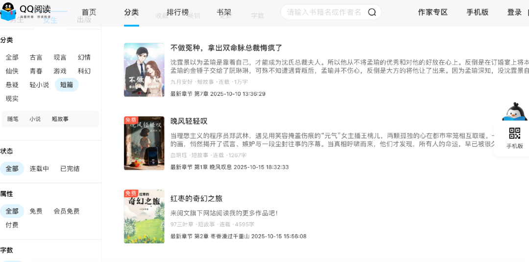 最核心的還是用戶體驗(yàn)上的需求。當(dāng)下用戶的閱讀習(xí)慣早已改變,很少有人能靜下心來讀一部幾十萬字、甚至百萬字的小說,但又需要“即時(shí)性的內(nèi)容滿足”,短故事2000到5萬字的篇幅,剛好能快速地引人入勝,開篇即入題,沒有冗長鋪墊,像懸疑故事開頭就拋疑點(diǎn)、甜寵故事快速拉滿情緒,這種“不拖沓”的體驗(yàn),契合了用戶對“短平快”內(nèi)容的需求。