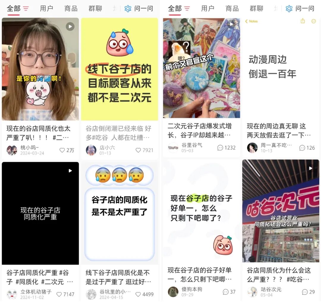 而今天,行業(yè)環(huán)境已發(fā)生顯著變化:其一,線下渠道布局趨于完整,正版谷子購買門檻大幅降低,不少核心消費(fèi)者收藏的谷子早已多到“無處安放”;其二,由于缺少新的超級IP,疊加市場的短期逐利性,熱門IP過度授權(quán)開發(fā)與產(chǎn)品濫發(fā)的現(xiàn)象愈發(fā)嚴(yán)重,引發(fā)粉絲“割韭菜”的質(zhì)疑;其三,谷子產(chǎn)品本身在品類創(chuàng)新、工藝升級及生活場景融入方面的突破有限,且價(jià)格體系十分混亂。多方因素的疊加下,消費(fèi)者線下“吃谷”意愿被顯著削弱,“吃谷”熱情有所消退,甚至社媒平臺中核心消費(fèi)者主動(dòng)“停谷”(即停止購買谷子產(chǎn)品)的現(xiàn)象也日益增多。