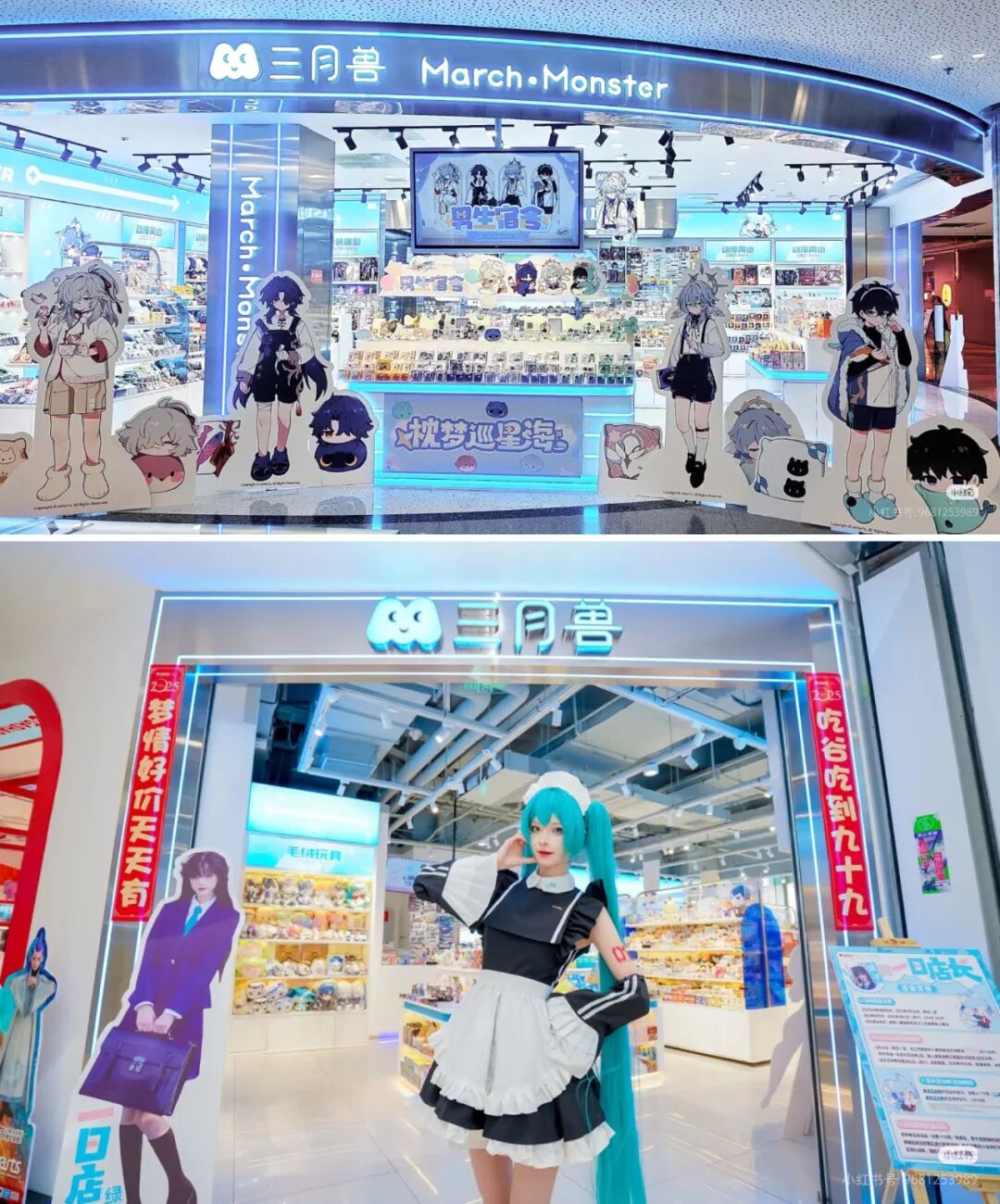 三月獸則將現(xiàn)有的零售門店與三月獸CAFé進(jìn)行場景融合、打包落地,即將于上海南京東路、深圳等地開業(yè)的新店均采用這一復(fù)合模式。其核心邏輯在于,通過構(gòu)建“吃谷+打卡+餐飲+社交”的場景組合,不僅豐富了IP在現(xiàn)實(shí)生活中的具象化延伸,更延長了消費(fèi)者的停留時(shí)間,滿足了消費(fèi)者情感共鳴、圈層歸屬等更深層次的情緒價(jià)值,讓線下門店從“商品購買地”升級為“圈層聚集地”。