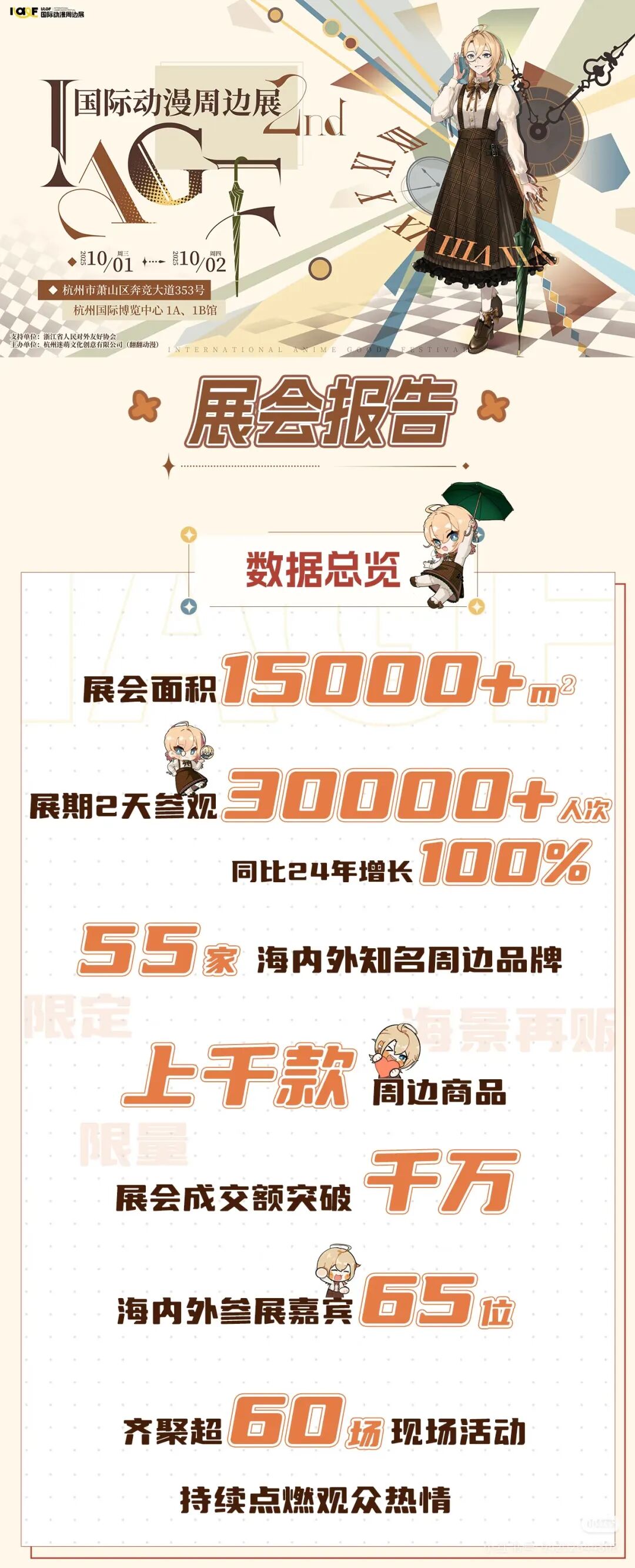 展會同樣也是粉絲深度觸達(dá)IP、釋放情感需求、實(shí)現(xiàn)圈層社交的重要場域,且由于其限時(shí)、限地、高濃度的特性,往往能在短時(shí)間內(nèi)爆發(fā)出超出想象的聚合能量。今年10.1-2號在杭州舉辦的第二屆IAGF國際動(dòng)漫周邊展便是典型例證。