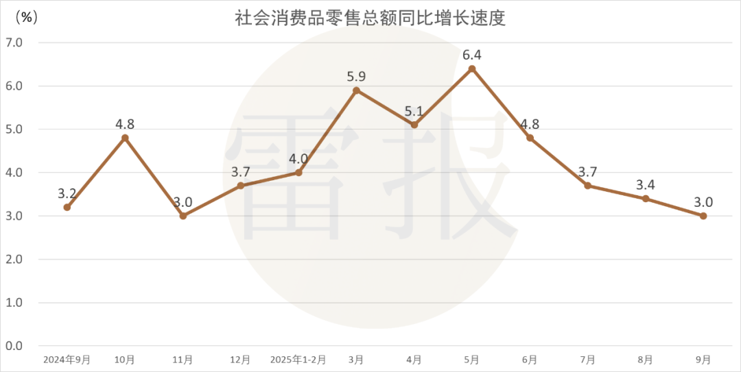 國家統(tǒng)計(jì)局最新數(shù)據(jù)顯示,今年9月,我國社會消費(fèi)品零售總額4.2萬億元,同比增長3.0%,但較上月回落0.4個(gè)百分點(diǎn),且增速連續(xù)4個(gè)月下降,更是去年9月以來的最低同比增速,消費(fèi)市場的整體疲軟態(tài)勢可見一斑。