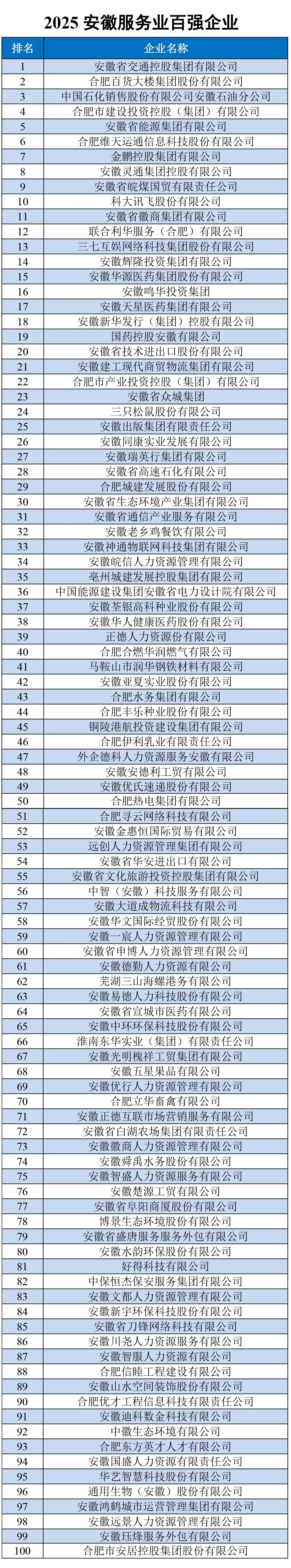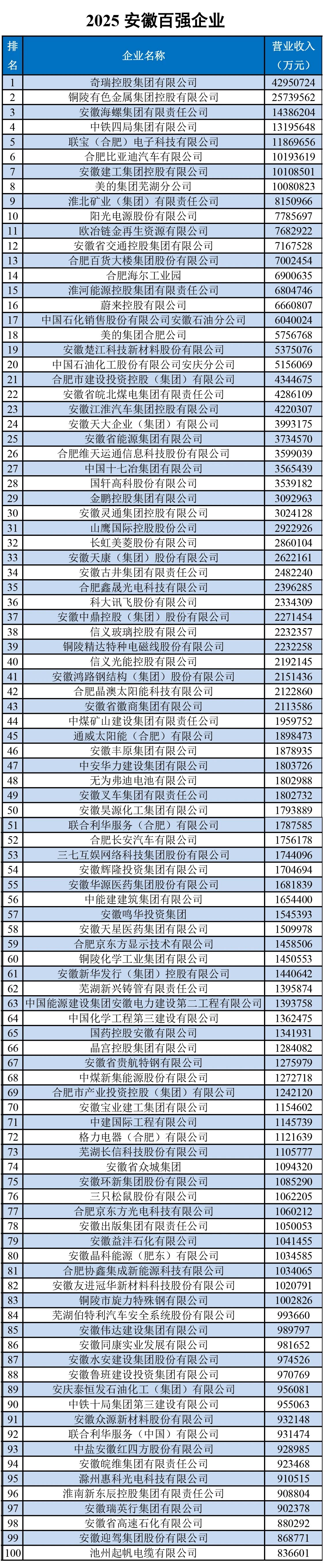 原標(biāo)題:剛剛,2025安徽百強企業(yè)榜單發(fā)布,這些企業(yè)入選……