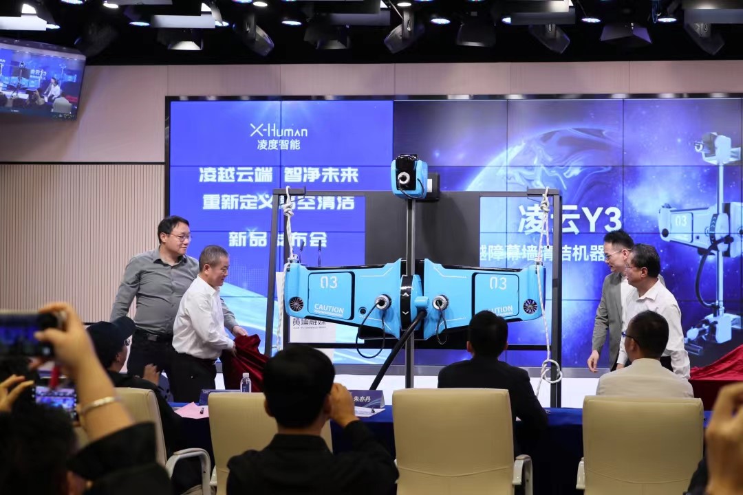 率先實現(xiàn)高空玻璃幕墻清洗機器人商用量產(chǎn)的廣東凌度智能科技發(fā)展有限公司,展出全球首臺跨步式多功能越障清潔機器人凌云Y3,該機器人具備自主跨越障礙、機載電池供電、自帶水箱、水循環(huán)回收和幕墻質(zhì)量檢測功能,填補我國摩天大樓高空清洗越障機器人技術(shù)空白,產(chǎn)品海內(nèi)外市場占有率靠前。