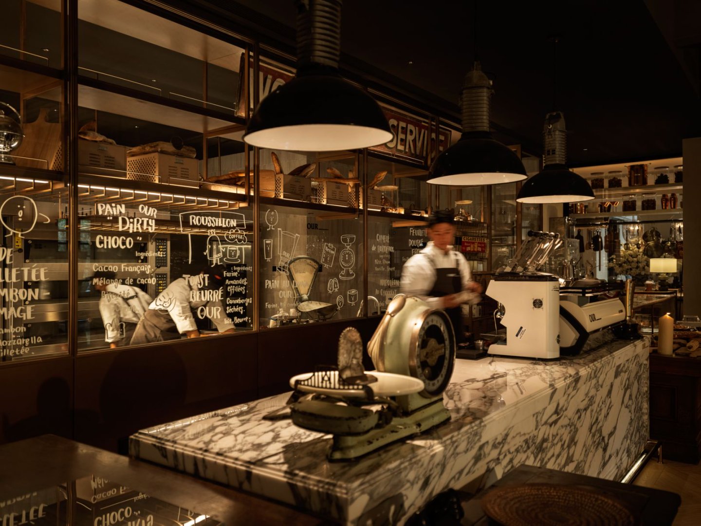 一層中央是與首爾高端烘焙品牌OUR Bakery聯(lián)手打造的全國首家黑金店。OUR此次亦帶來兩款限定出品,提拉米蘇起酥與Conpanna。