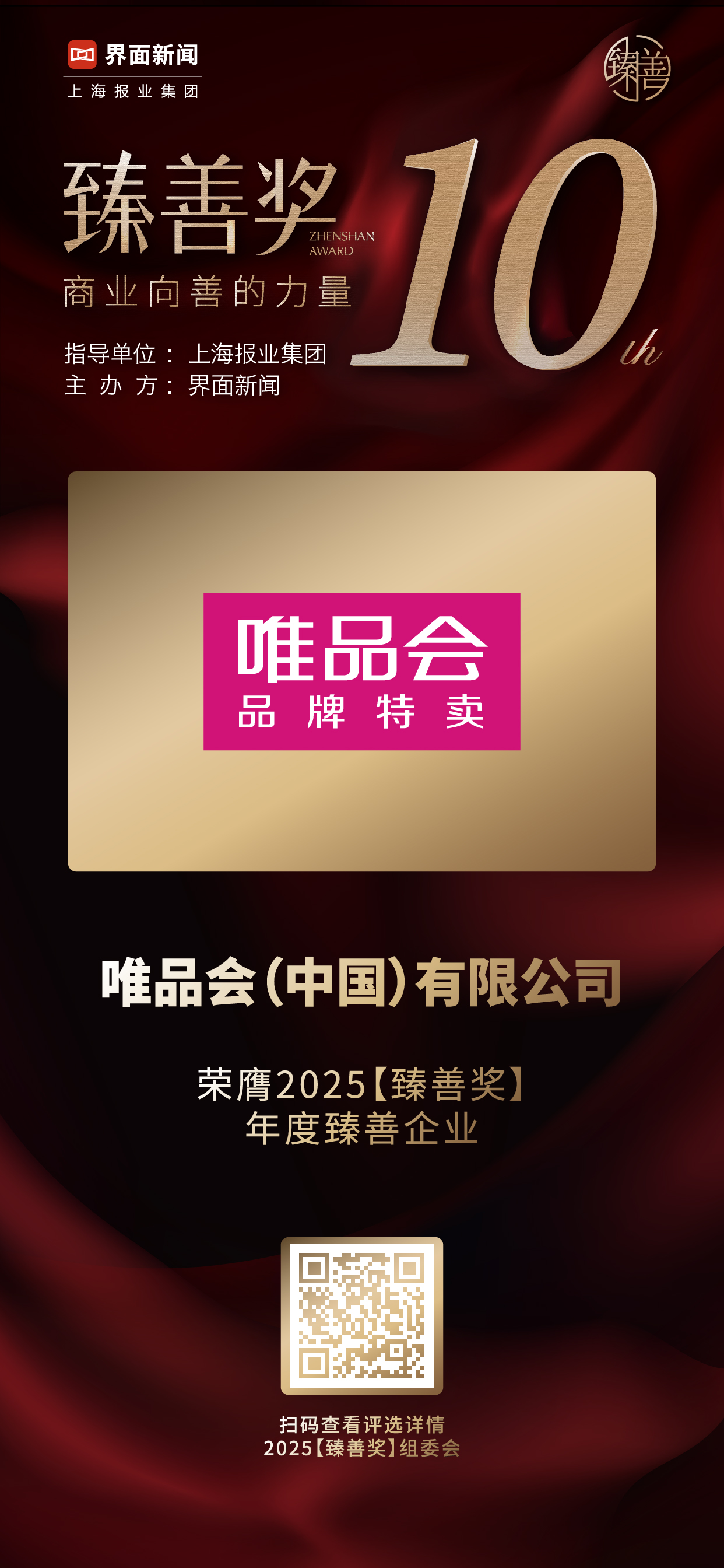 其中,唯品會(中國)有限公司榮獲2025【臻善獎】年度臻善企業(yè)。