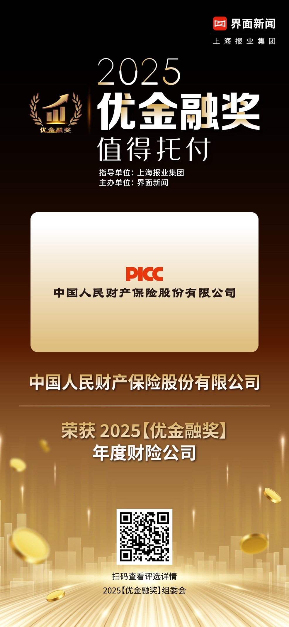 其中,中國人民財產(chǎn)保險股份有限公司榮獲2025【優(yōu)金融獎】年度財險公司。