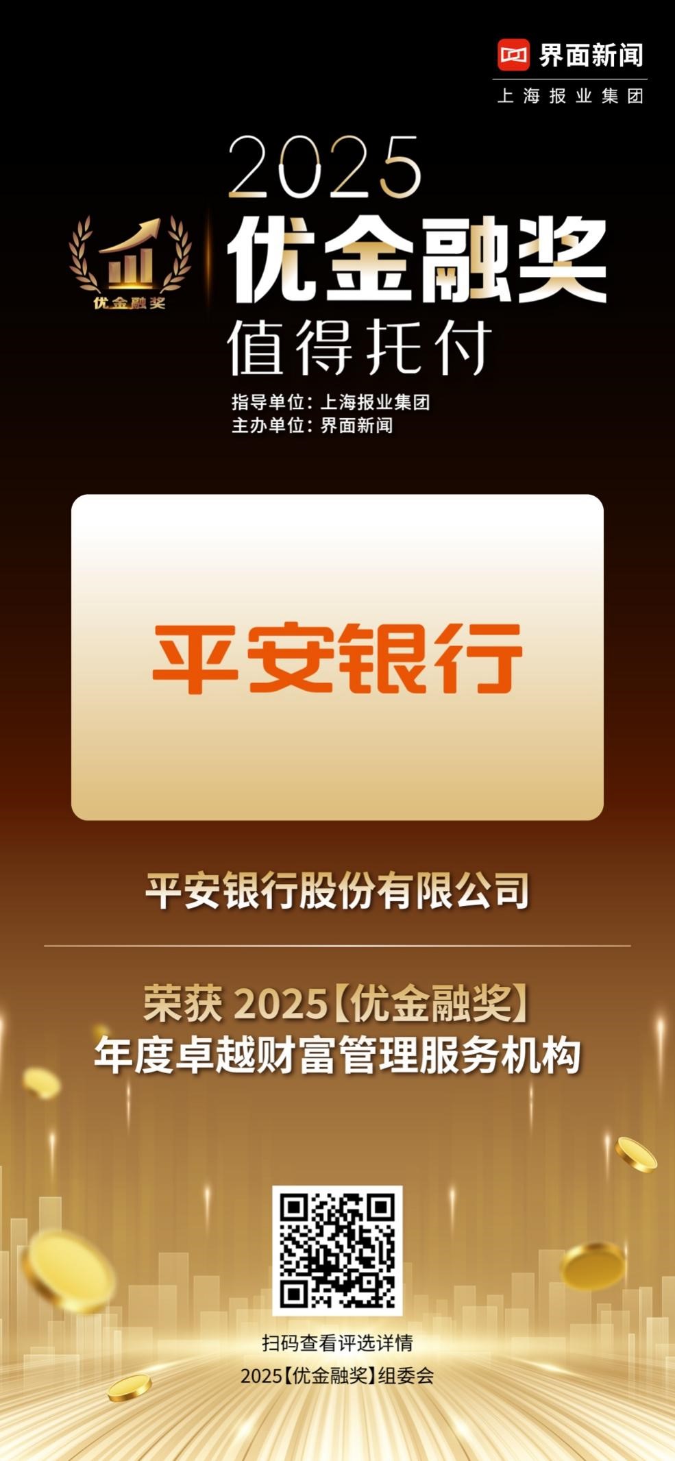 其中,平安銀行股份有限公司榮獲2025【優(yōu)金融獎(jiǎng)】年度卓越財(cái)富管理服務(wù)機(jī)構(gòu)。