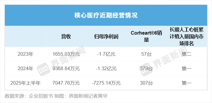 據(jù)招股書,核心醫(yī)療現(xiàn)已布局5款植入式和6款介入式人工心臟產(chǎn)品,能覆蓋長期/短期支持、左心/雙心支持、幼兒/成人支持等臨床需求。經(jīng)營數(shù)據(jù)顯示,核心醫(yī)療尚未形成穩(wěn)定盈利,但營收正在快速增長。據(jù)招股書,2023年、2024年及2025年上半年,核心醫(yī)療的營收逐年遞增;同期的歸母凈利潤的虧損情況逐步收窄。