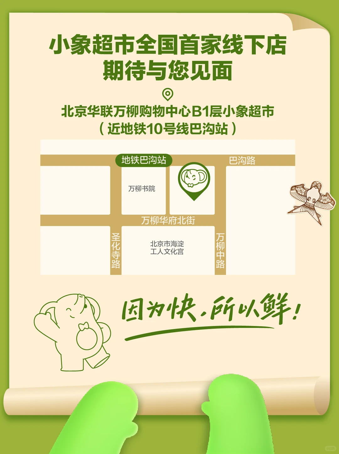 首家小象超市的線下門店,選址在北京海淀區(qū)華聯(lián)萬柳購物中心 B1 層,將于12月19日正式開業(yè)。這一地址此前是BHG精品超市,于去年年底閉店,面積近6000平米。