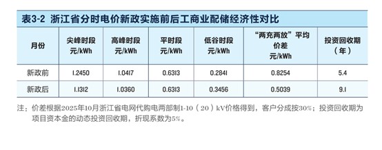 分時(shí)電價(jià)調(diào)整后,浙江省的平均電價(jià)差從0.83元/千瓦時(shí)縮小至0.50元/千瓦時(shí),投資回收期由5.4年變?yōu)?.1年