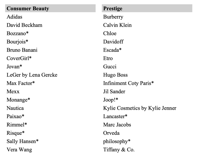 科蒂簽約品牌一覽 | 圖片來源;科蒂財(cái)報(bào)