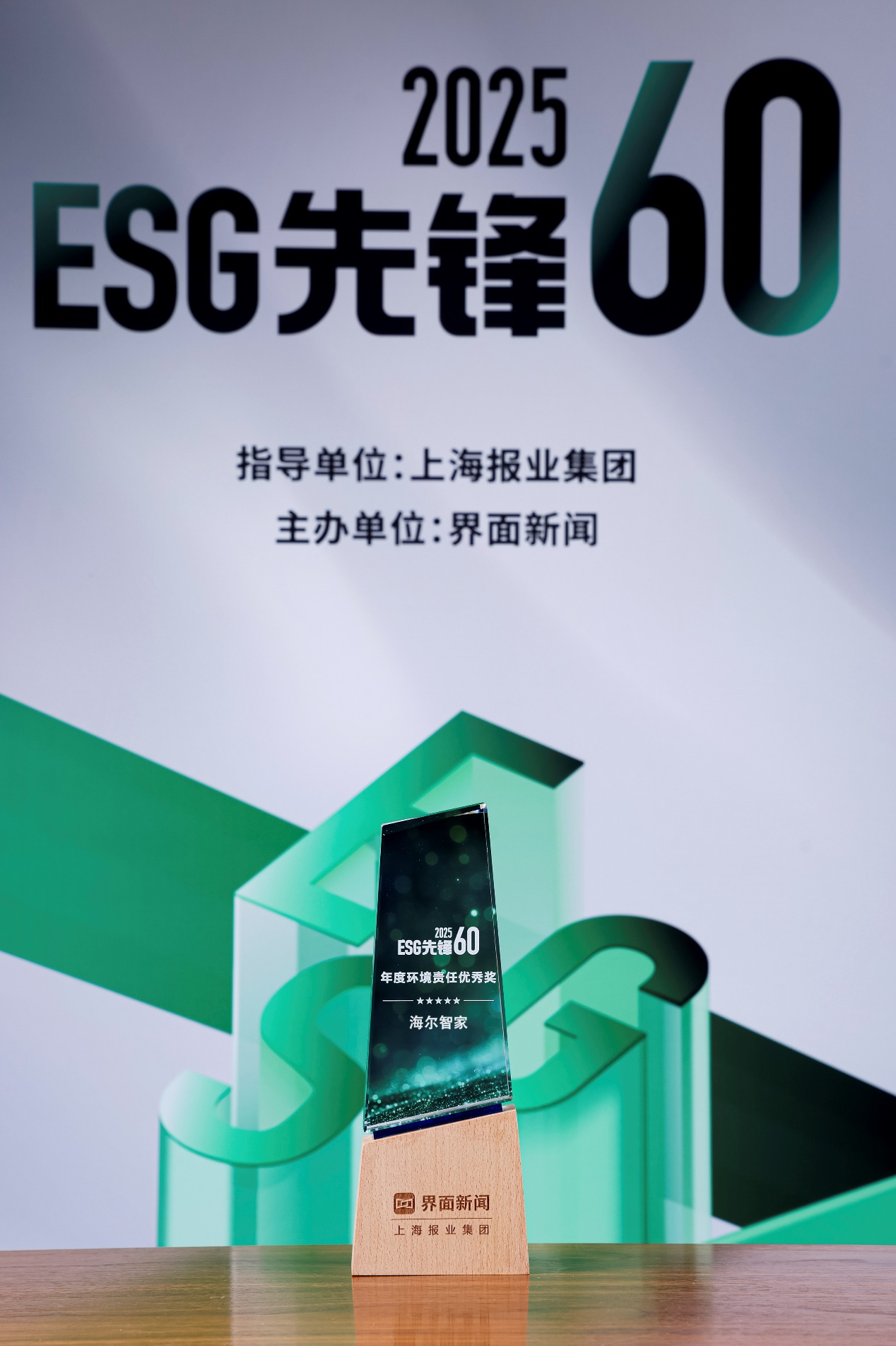 其中,海爾智家榮獲2025【ESG先鋒60】年度環(huán)境責(zé)任優(yōu)秀獎(jiǎng)。
