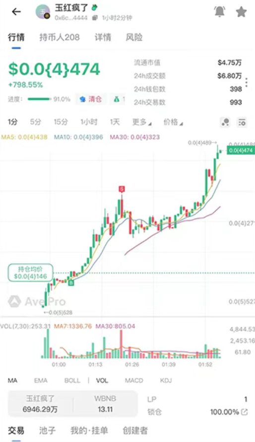 更絕的是,伴隨這場口水戰(zhàn)的發(fā)酵,一款名為“$玉紅瘋了”的meme幣在BSC鏈上橫空出世,并在極短時間內完成市值翻倍。
