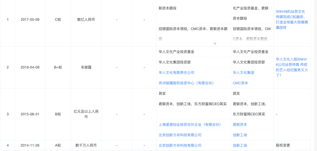 絲芭傳媒在2014年至2017年的快速成長期,憑借其創(chuàng)新的“養(yǎng)成系”偶像模式,成功吸引了多家國內(nèi)頂尖投資機(jī)構(gòu)的連續(xù)注資,完成了一個清晰的資本進(jìn)階歷程。