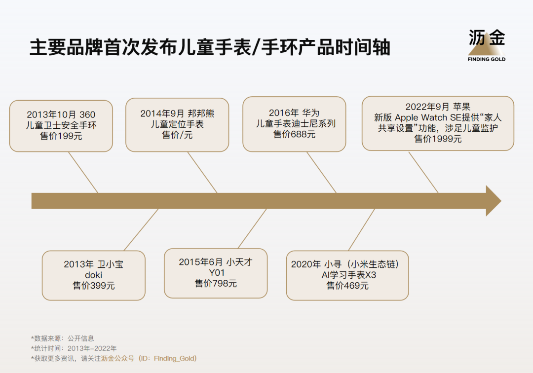 2013年前后,360、搜狗等互聯(lián)網(wǎng)公司就率先推出定位手環(huán)或手表產(chǎn)品,核心賣點主打安全防丟,之后的幾年,華為、小米等巨頭也嗅到商機、紛紛入局。