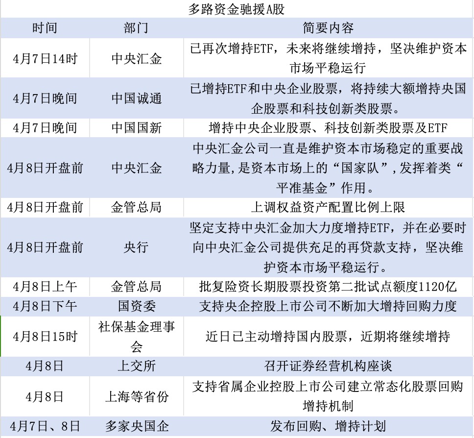 救市就是救火。金融市場(chǎng)是信心和預(yù)期的反映,在中美貿(mào)易戰(zhàn)的背景下,只有金融市場(chǎng)穩(wěn)住了,才能堅(jiān)定各方打贏貿(mào)易戰(zhàn)的決心。旋即一系列救市措施密集推出,短時(shí)間內(nèi)多路資金“馳援”A股。