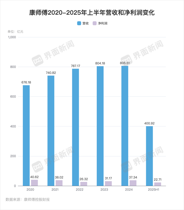 盡管康師傅并未披露包含7-9月的三季度財報,但它的2025年上半年業(yè)績情況并不樂觀,飲料營收同比下降2.6%,相當于少賣了7.06億元。