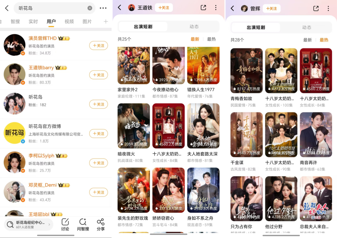 行業(yè)內(nèi)部結(jié)構(gòu)也在發(fā)生深刻變化。越來(lái)越多的短劇演員開(kāi)始簽約正規(guī)影視公司,實(shí)現(xiàn)職業(yè)化轉(zhuǎn)型。聽(tīng)花島等頭部制作方簽約王道鐵、曾輝等演員,打造“以人帶劇”的閉環(huán)模式。