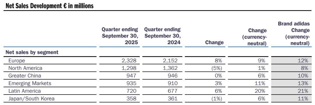 截圖來源于阿迪達(dá)斯2025年三季報