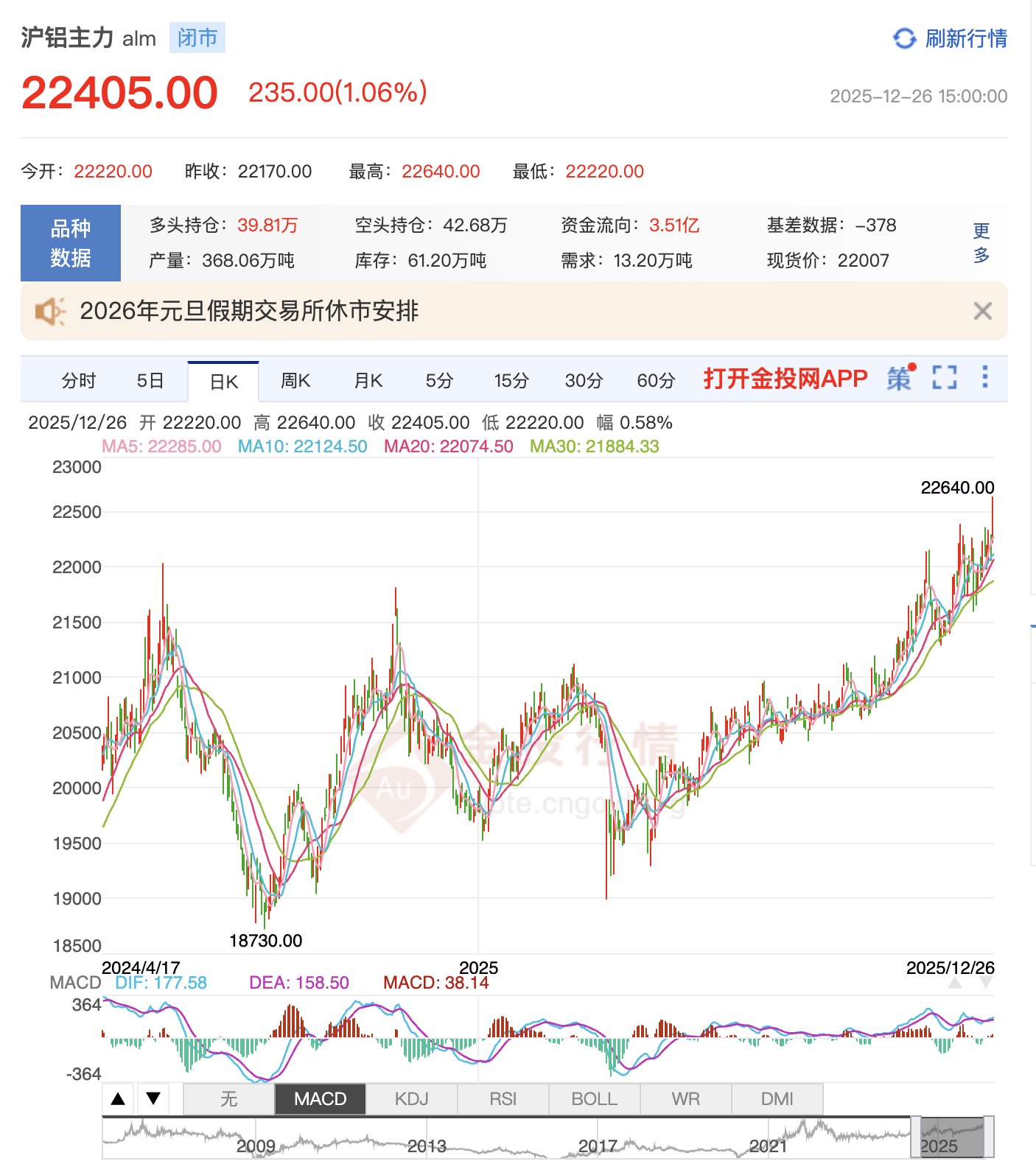 另一方面,受供應(yīng)預(yù)期擾動(dòng)及地緣政治等因素影響,金銅等有色金屬價(jià)格鋁創(chuàng)歷史新高,也對(duì)鋁價(jià)形成較強(qiáng)帶動(dòng)。