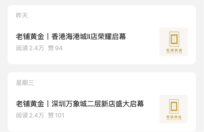 來(lái)源:老鋪黃金官方微信公眾號(hào)