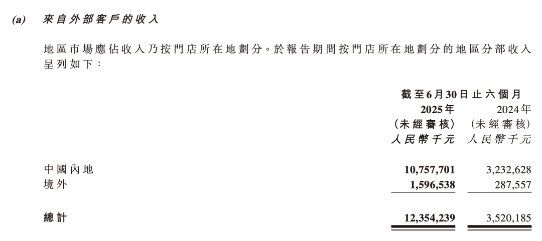 2025年,老鋪黃金實(shí)現(xiàn)收入123.54億元,同比增長(zhǎng)251%,這其中,來(lái)自中國(guó)內(nèi)地市場(chǎng)的收入為107.58億元,境外市場(chǎng)的收入為15.97億元,境外市場(chǎng)的收入占比依然有限。