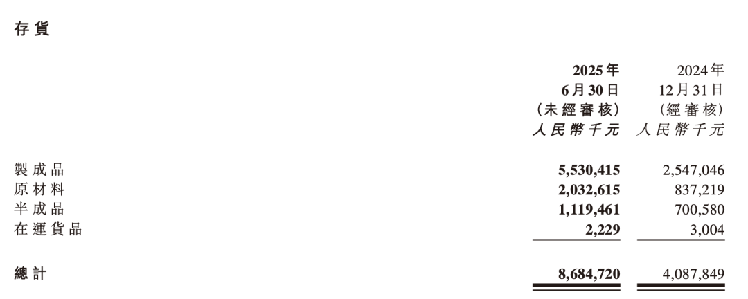 應(yīng)對(duì)金價(jià)波動(dòng)的風(fēng)險(xiǎn),老鋪黃金通過(guò)融資“囤金”的策略鎖定庫(kù)存成本。數(shù)據(jù)顯示,截至2025年6月,其存貨規(guī)模達(dá)86.85億元,相比去年末增長(zhǎng)112.45%。