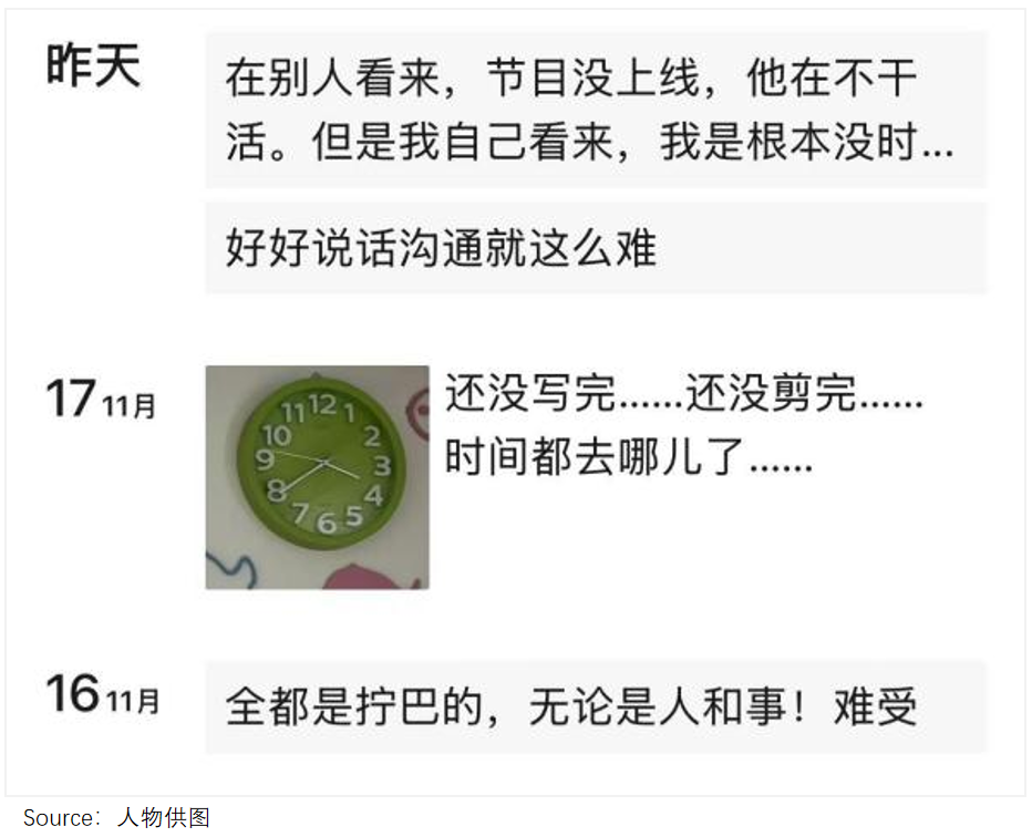 自知理虧的VE,再也不敢提起這事,可每個(gè)錄制到凌晨的深夜,想到望不見光明的前路,還是忍不住發(fā)朋友圈吐苦水。