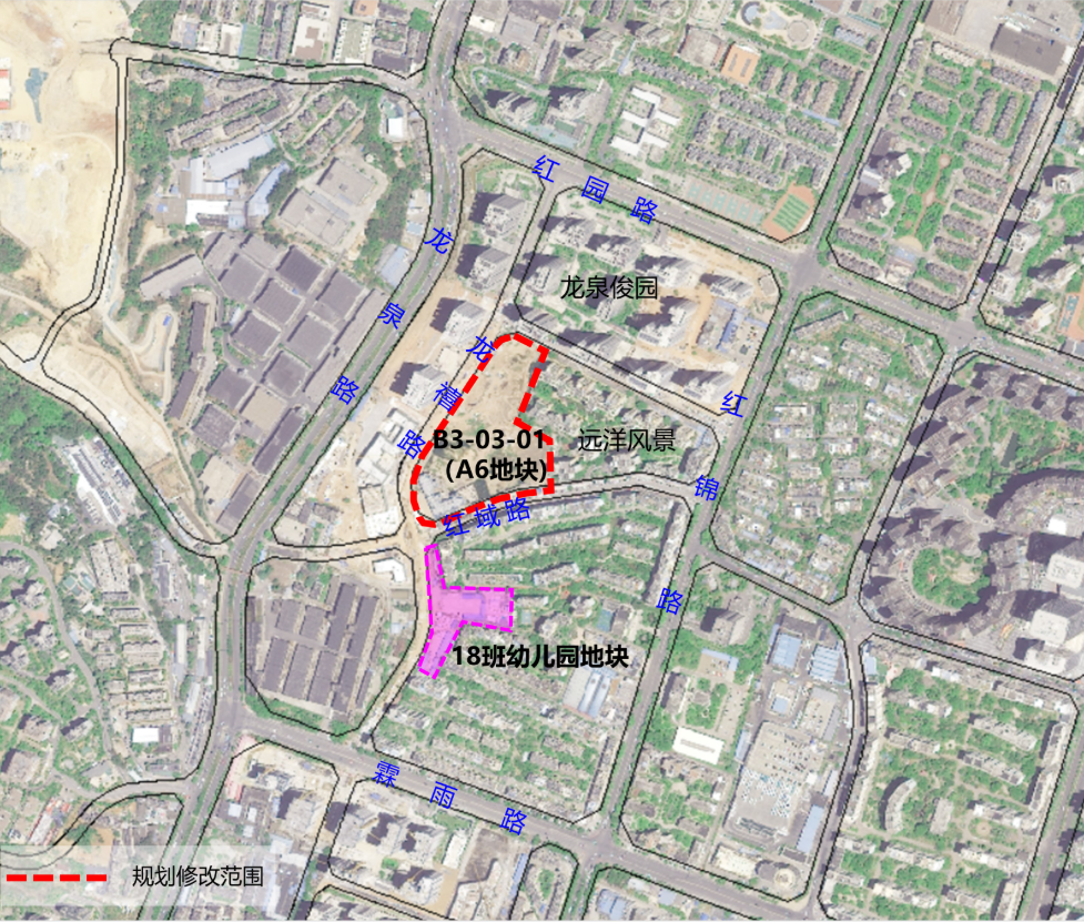 其中,龍泉俊園A6地塊容積率由7.73降至3.72,住宅限高80米,并與南側(cè)18班幼兒園同步建設交付。而在原規(guī)劃中,配建的幼兒園體量只有6個班。