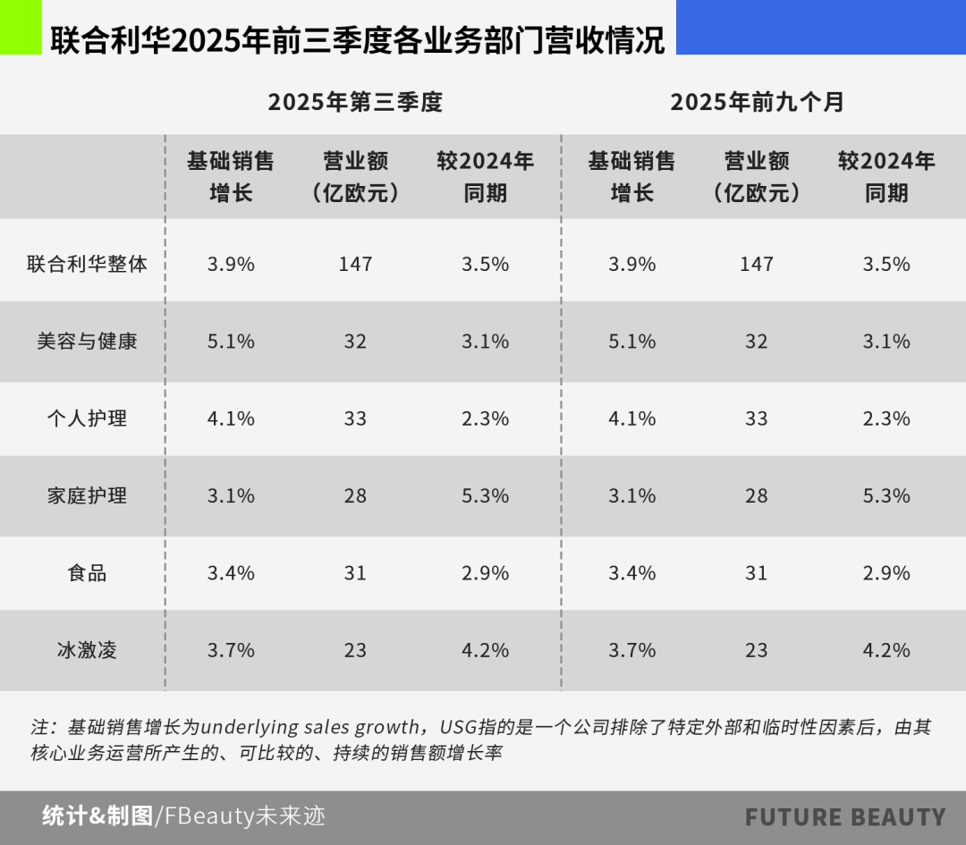 在2025年第三季度財報中,集團前任首席執(zhí)行官海因(Hein Schumacher)表示,美容、健康與個人護理領域?qū)⑹俏磥砑瘓F品牌建設的重點布局。同時,集團將“優(yōu)先發(fā)展高端細分市場和數(shù)字商務,以規(guī)?;瘽M足消費者需求作為戰(zhàn)略核心,并在各渠道實現(xiàn)卓越執(zhí)行?!?/p>