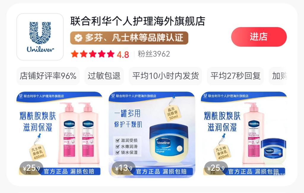 聯(lián)合利華海外旗艦店也已入駐抖音