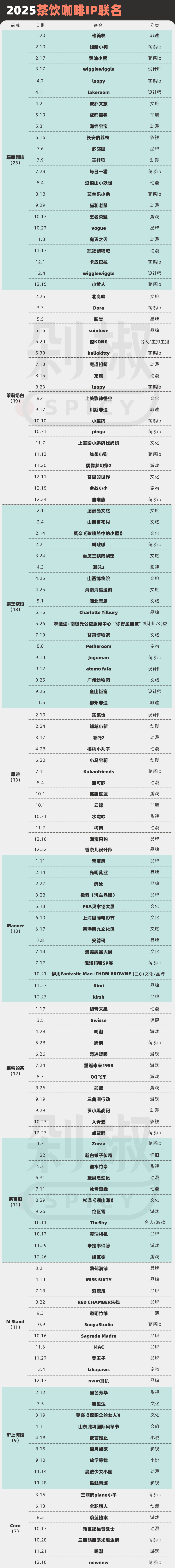 總體而言,2025年的茶飲品牌們在各個IP品類都相當(dāng)努力。