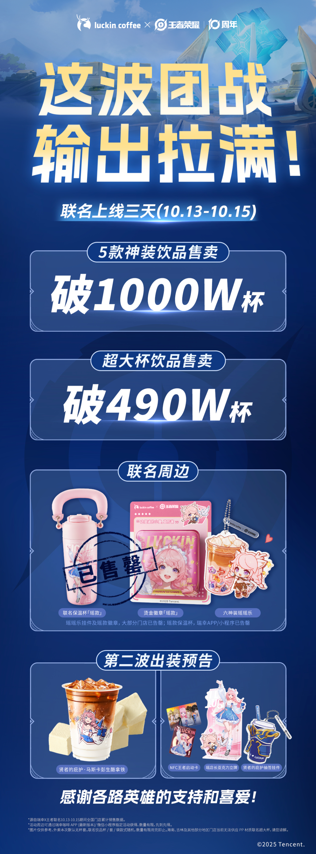 游戲聯(lián)動茶飲咖啡已經(jīng)成了行業(yè)慣例,往往放在游戲版本的重要節(jié)點(diǎn),玩法高度成熟,聯(lián)名戰(zhàn)報也和周年慶的流水同樣誘人。瑞幸聯(lián)名《王者榮耀》,五款聯(lián)名飲品在三天內(nèi)銷量杯數(shù)突破千萬。奈雪聯(lián)動《如鳶》,有報道顯示部分門店單日營業(yè)額暴漲近700%。