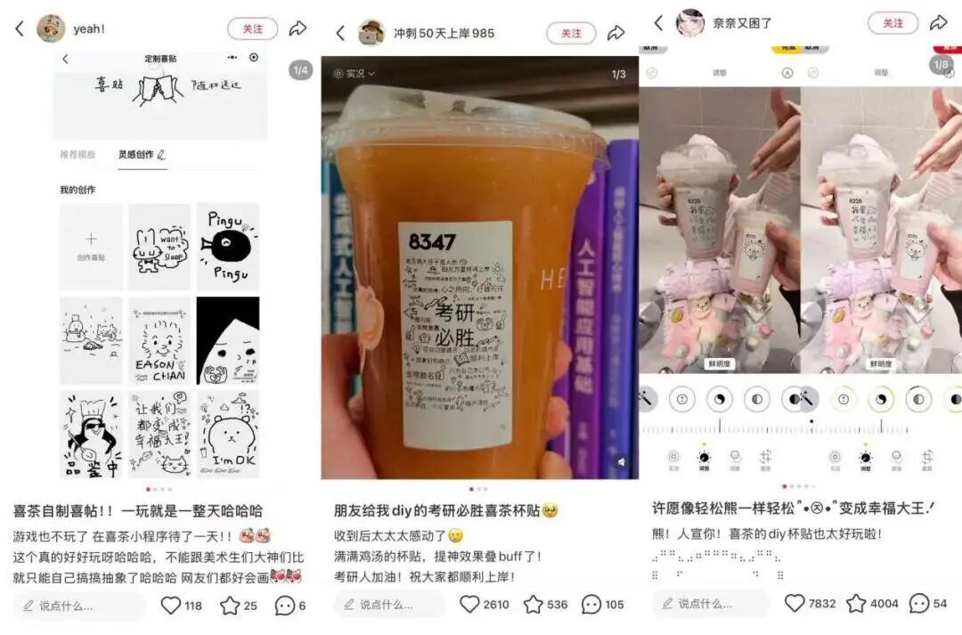 喜茶雖然從聯(lián)名中撤退,卻沒有舍棄社交營銷。剁椒曾在【“定制喜帖成硬通貨,喜茶這波低成本狂歡怎么就火了?"】中分析過,喜茶的定制喜帖提供的是和IP聯(lián)名相通的情緒價值,但成本更低,回報更高。