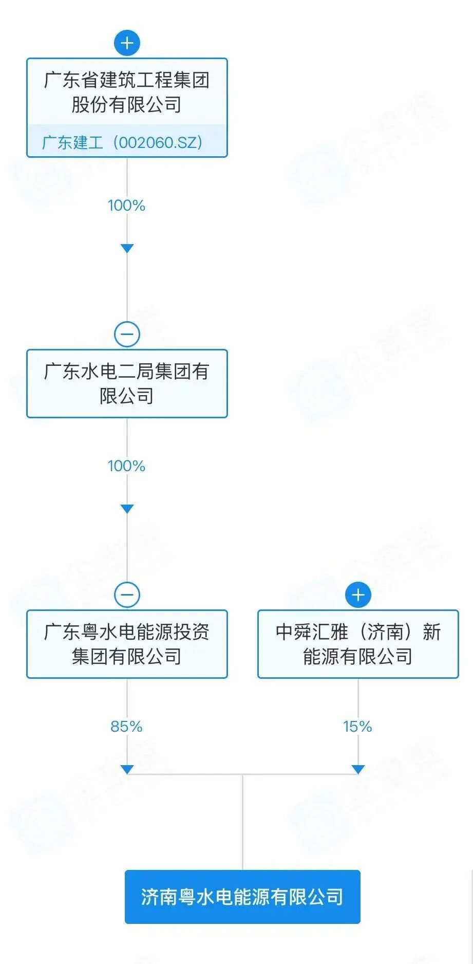 去年5月9日,濟(jì)南粵水電能源有限公司在濟(jì)南市章丘區(qū)注冊(cè)成立,注冊(cè)資本200萬(wàn)元。股權(quán)穿透顯示,粵水電能源集團(tuán)與中舜匯雅(濟(jì)南)新能源有限公司分別持股85%、15%,法定代表人崔建琨。
