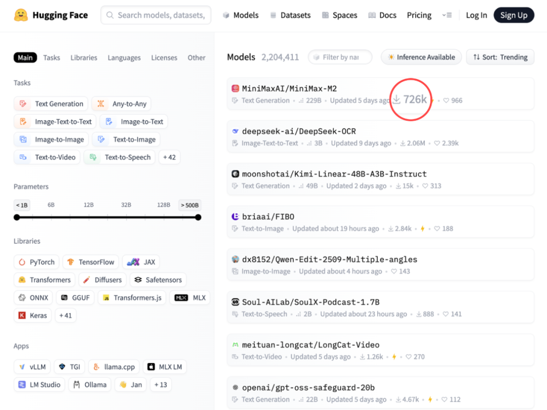 M2在HuggingFaceTrending榜單中位列全球第一,圖/MiniMax官網(wǎng)