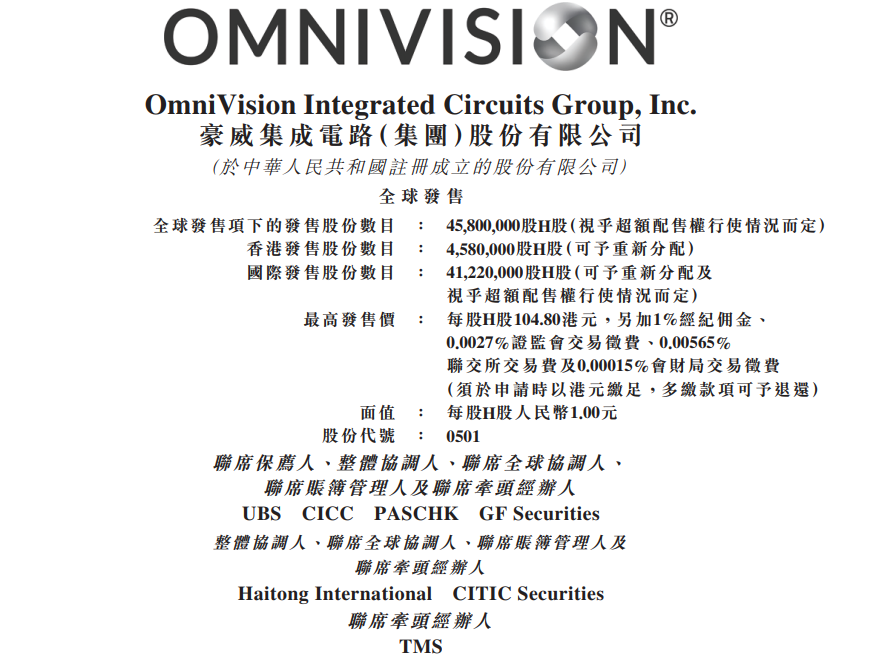12月31日早間,豪威集團(tuán)在港交所公告,公司擬全球發(fā)售45,800,000股H股,香港發(fā)售股份4,580,000股H股,國際發(fā)售股份41,220,000股H股;最高發(fā)售價(jià)為每股104.80港元;預(yù)期股份將于2026年1月12日開始在香港聯(lián)交所買賣。