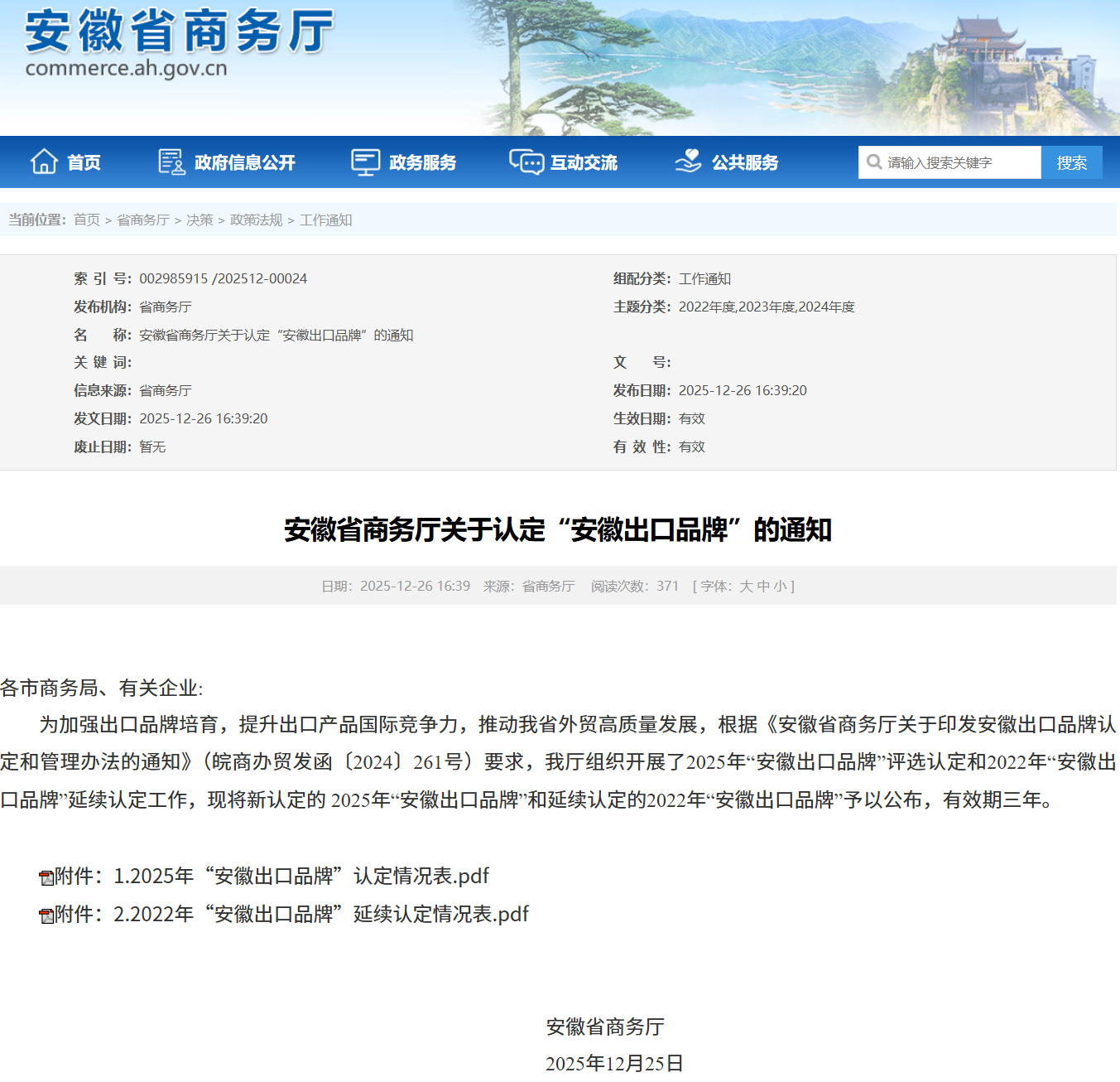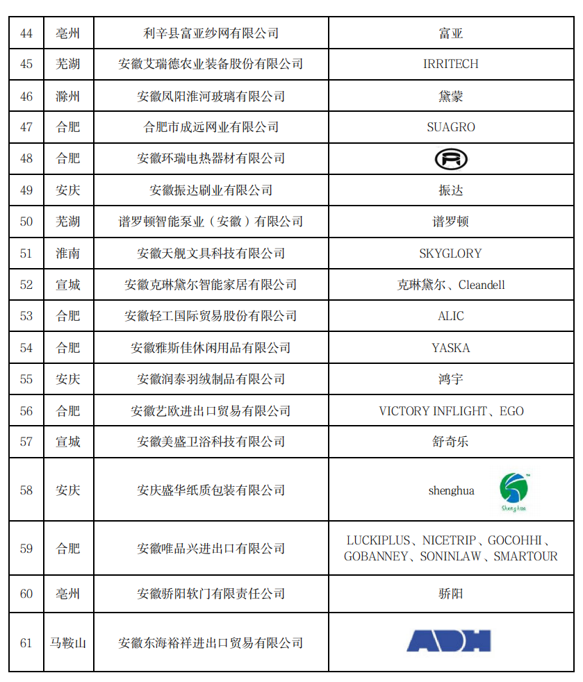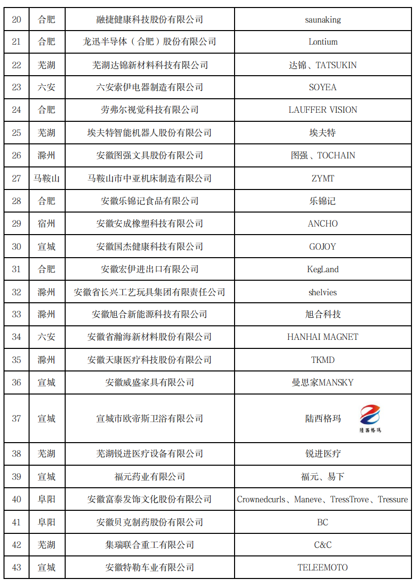 2025年“安徽出口品牌”認(rèn)定情況表