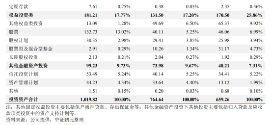 截至2023年末,公司權(quán)益類投資資產(chǎn)合計131.50億元,較2022年末下降22.87%;到了2024年,公司權(quán)益類資產(chǎn)又沖到181.21億元的規(guī)模。