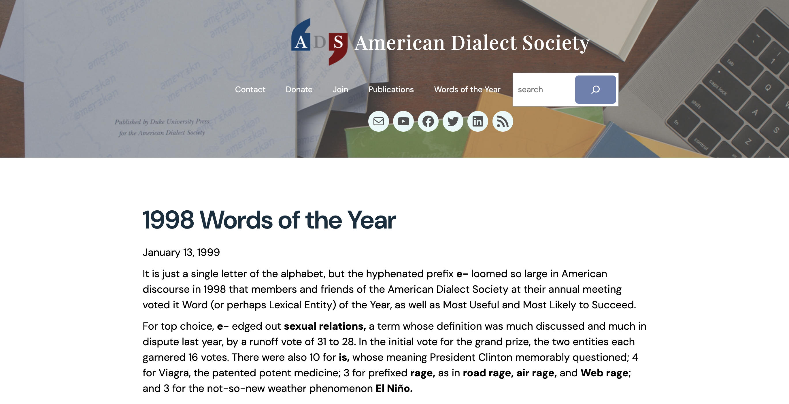 美國方言學(xué)會(huì)網(wǎng)頁截圖