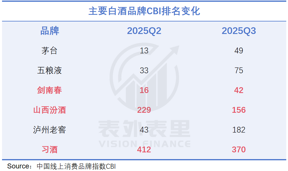 這不能說明劍南春、山西汾酒已“稱王”,畢竟CBI只反映線上,不勾勒全貌。但數(shù)據(jù)也不會說謊,它們的相對位次上升,必然做對了什么。