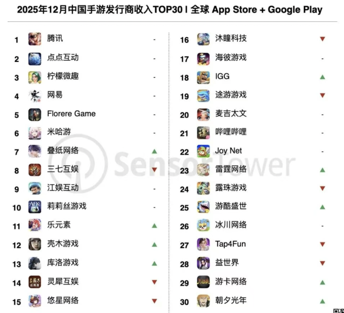 《王者榮耀》2025年吸金超20億美元,騰訊再登頂手游發(fā)行商收入榜首