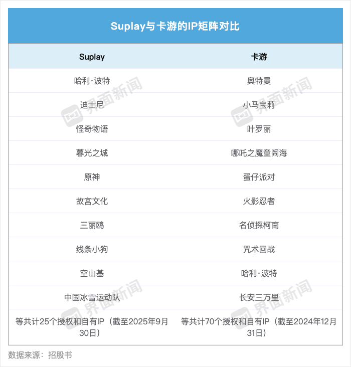 Suplay與卡游的IP矩陣對比 圖表制作:界面新聞 馬越