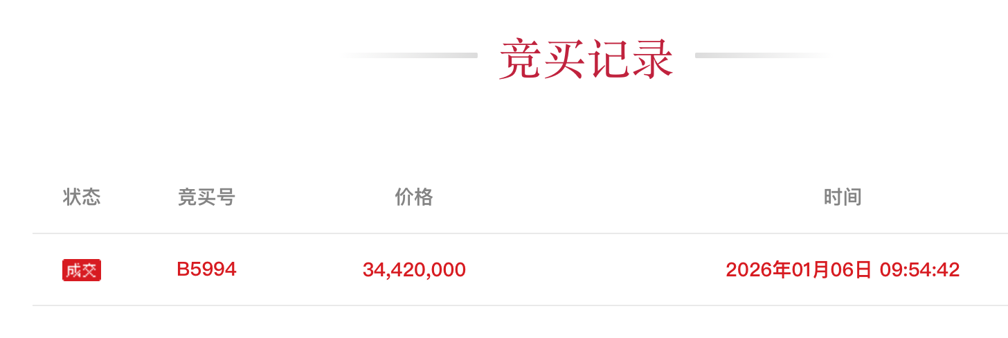 據(jù)拍賣平臺(tái)信息顯示,截至1月6日午間,兩場(chǎng)拍賣均吸引了超過100人設(shè)置提醒,超過6000人次圍觀,且各有2名競(jìng)拍者報(bào)名。在天宇投資持股的拍賣中,競(jìng)買者直至結(jié)束前6分鐘才首次出價(jià),最終該部分股權(quán)以底價(jià)成交。另一場(chǎng)天成投資持股的拍賣當(dāng)時(shí)仍在進(jìn)行中,暫未有人出價(jià)。